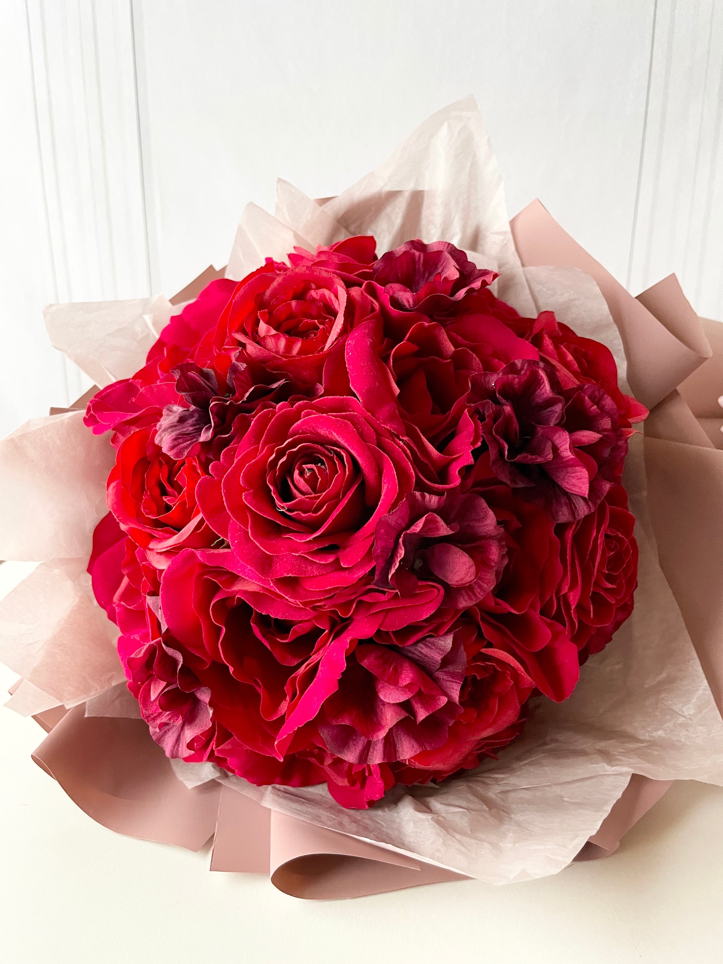 【売約済】赤いバラのKorean Style Bouquet(韓国ブーケ) プロポーズ ウェディングブーケ アーティフィシャルフラワー 還暦祝い 造花